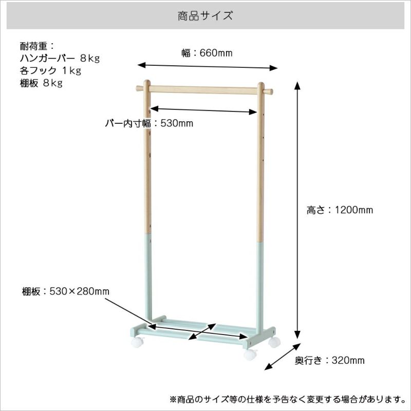 服がかけられるバーの幅は53cm、耐荷重は8kgです。
