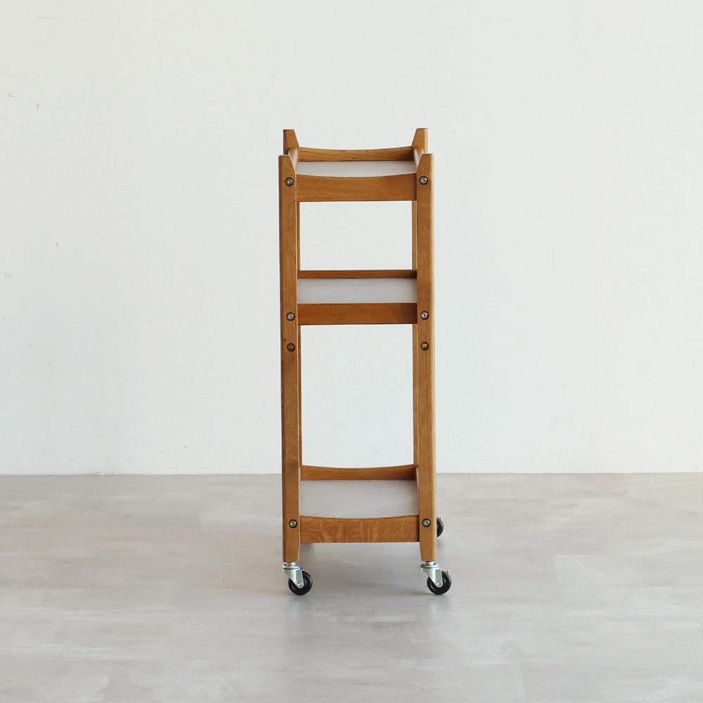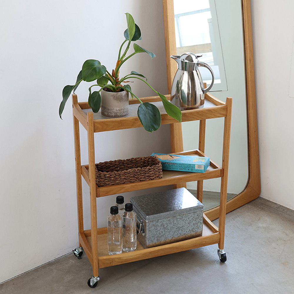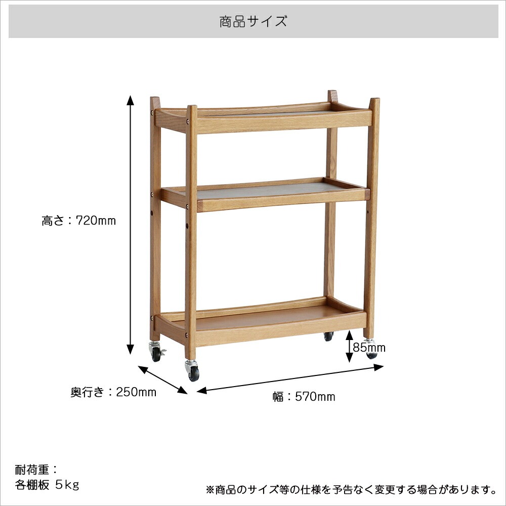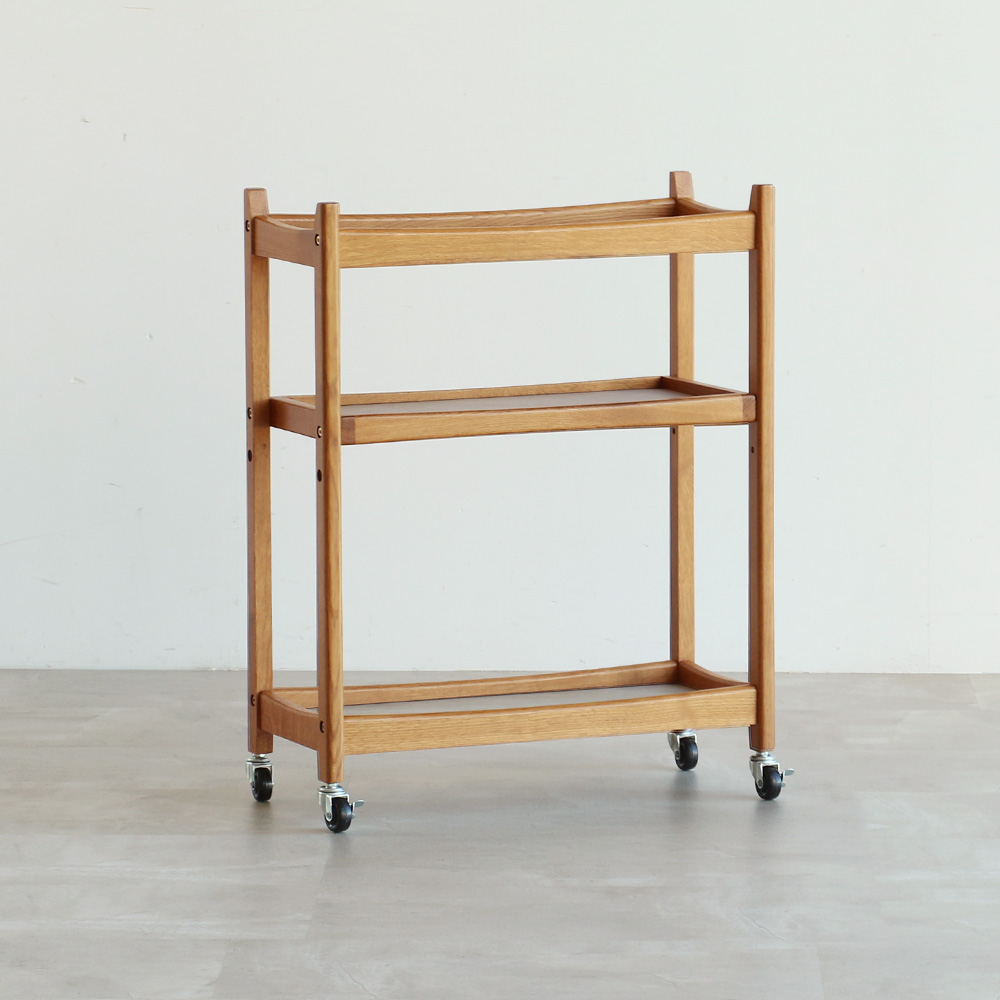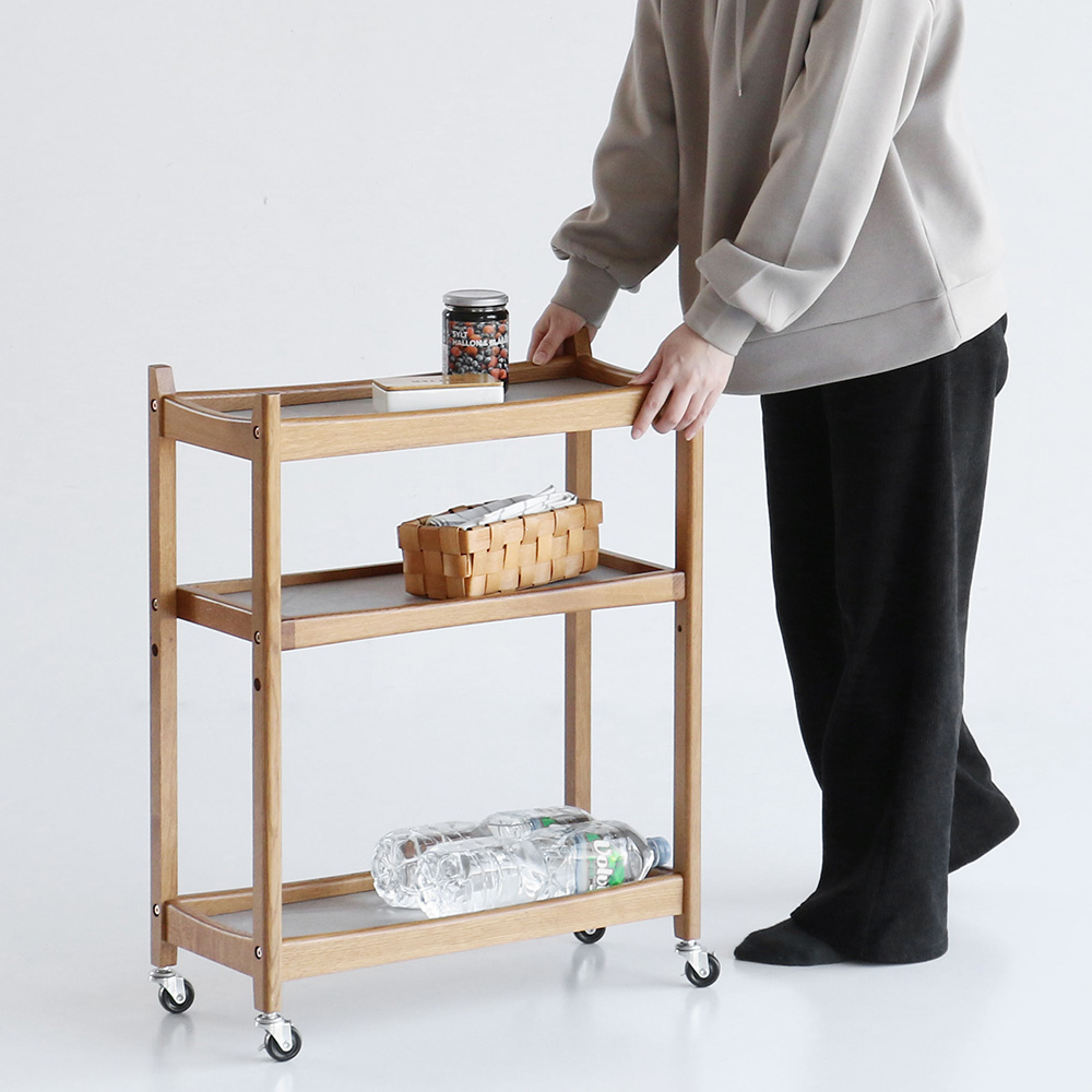 温かい天然木とクールな石目調。コンパクトながらしっかり収納できる3段ワゴンラック[HEW-3774]