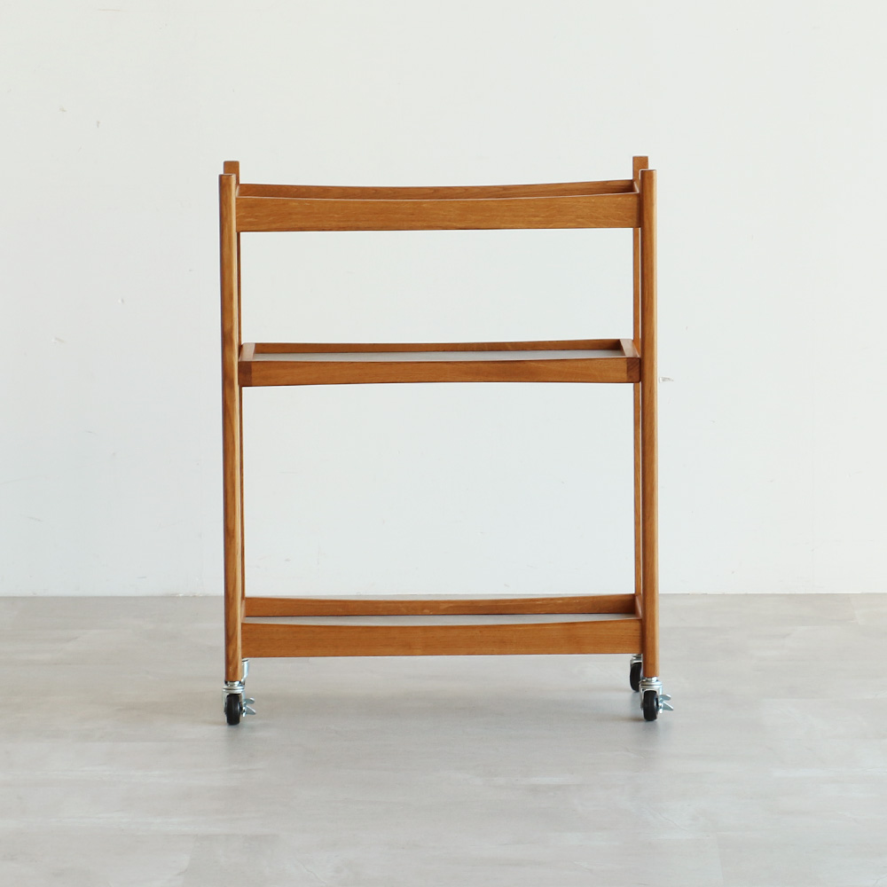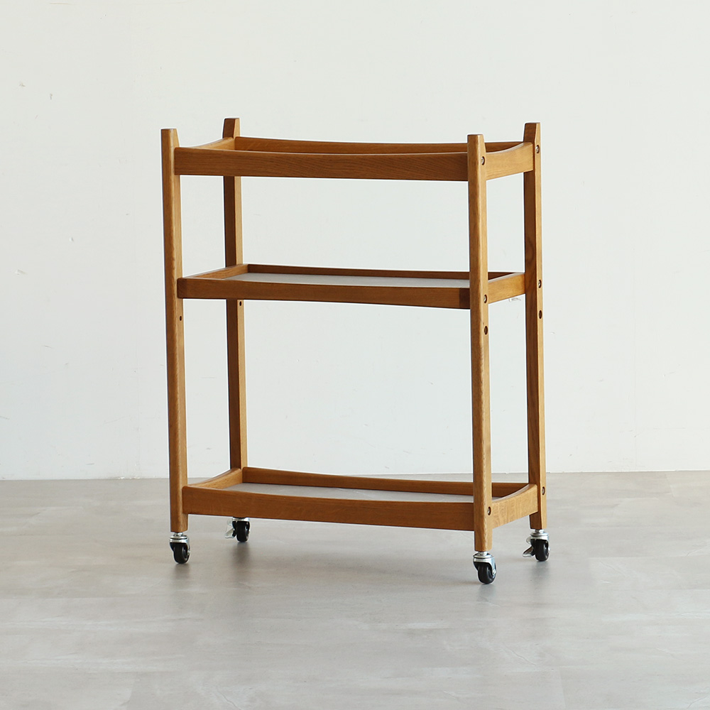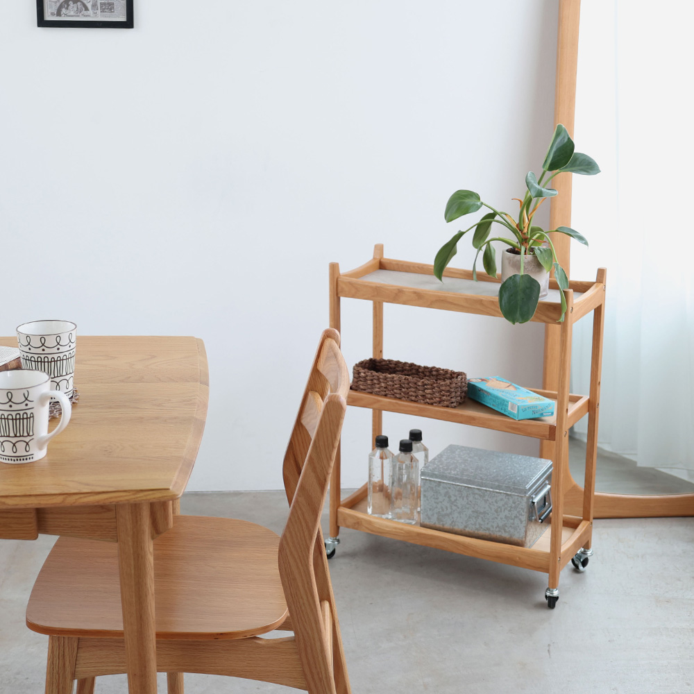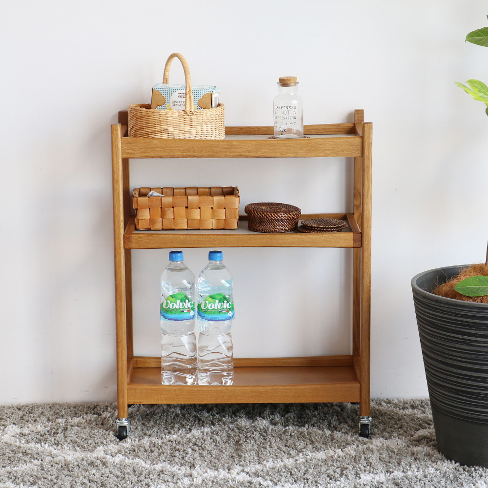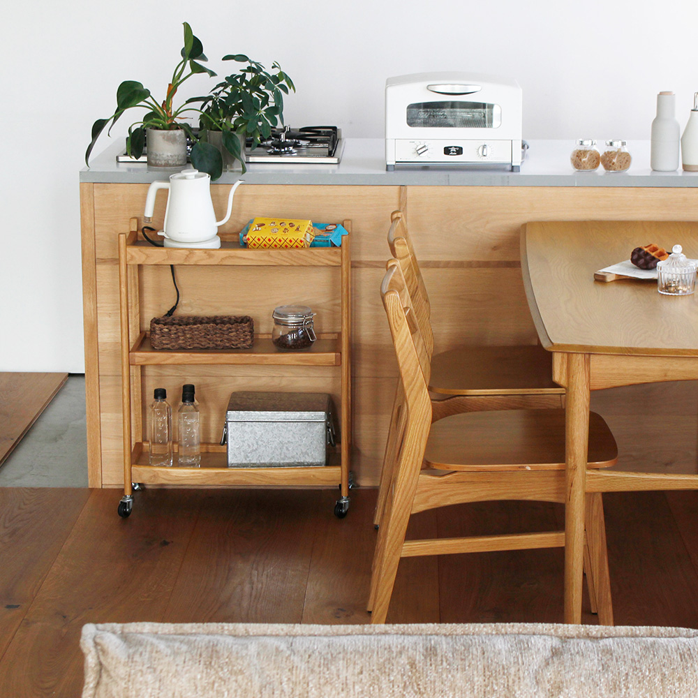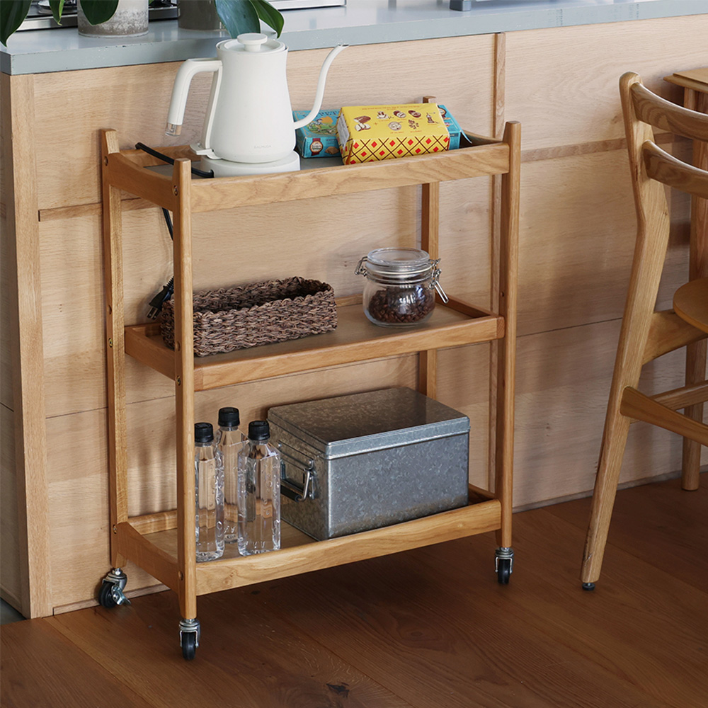 温かい天然木とクールな石目調。コンパクトながらしっかり収納できる3段ワゴンラック[HEW-3774]