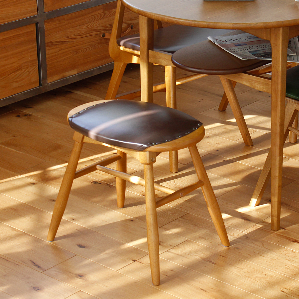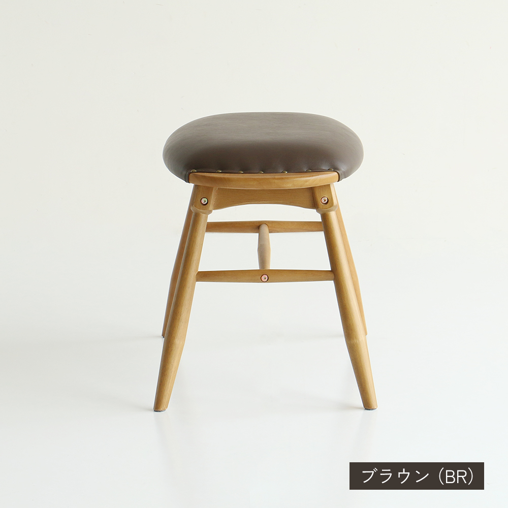 [材質]BR:座面:積層合板/ウレタンフォーム/合成皮革(PVC).その他:天然木(ラバーウッド材)