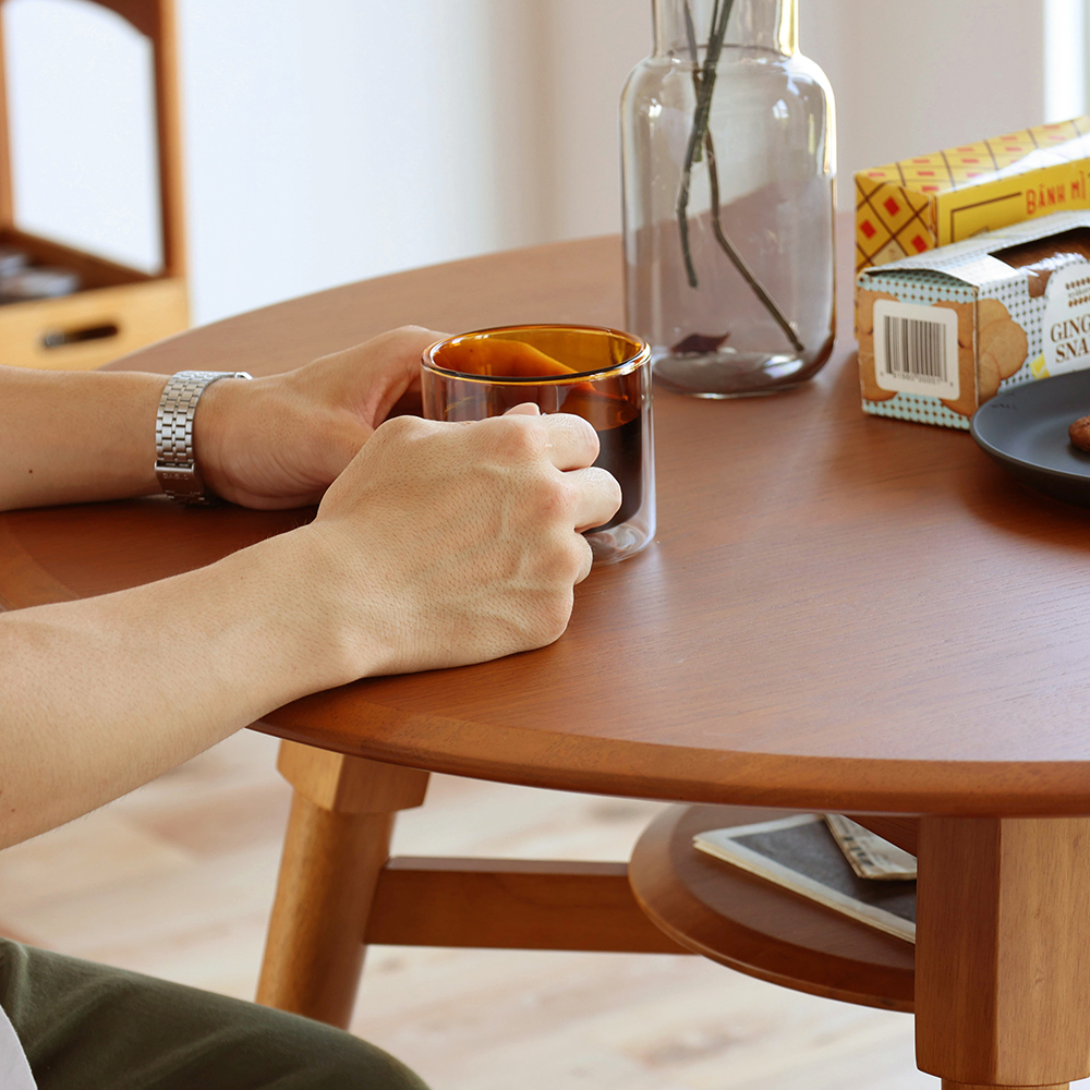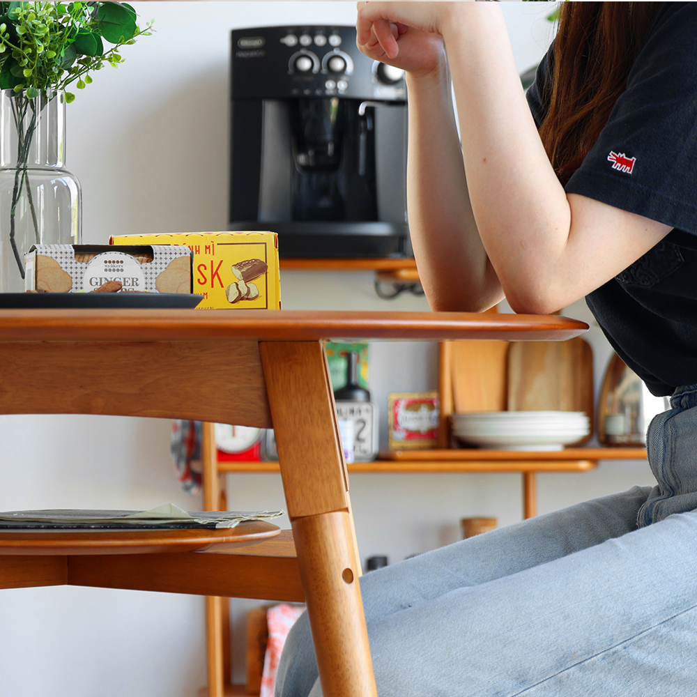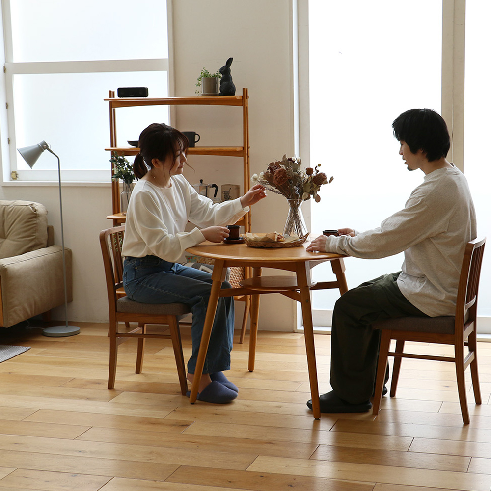 [材質]:天板,棚板:天然木化粧板(オーク材).脚:天然木(ラバーウッド材)