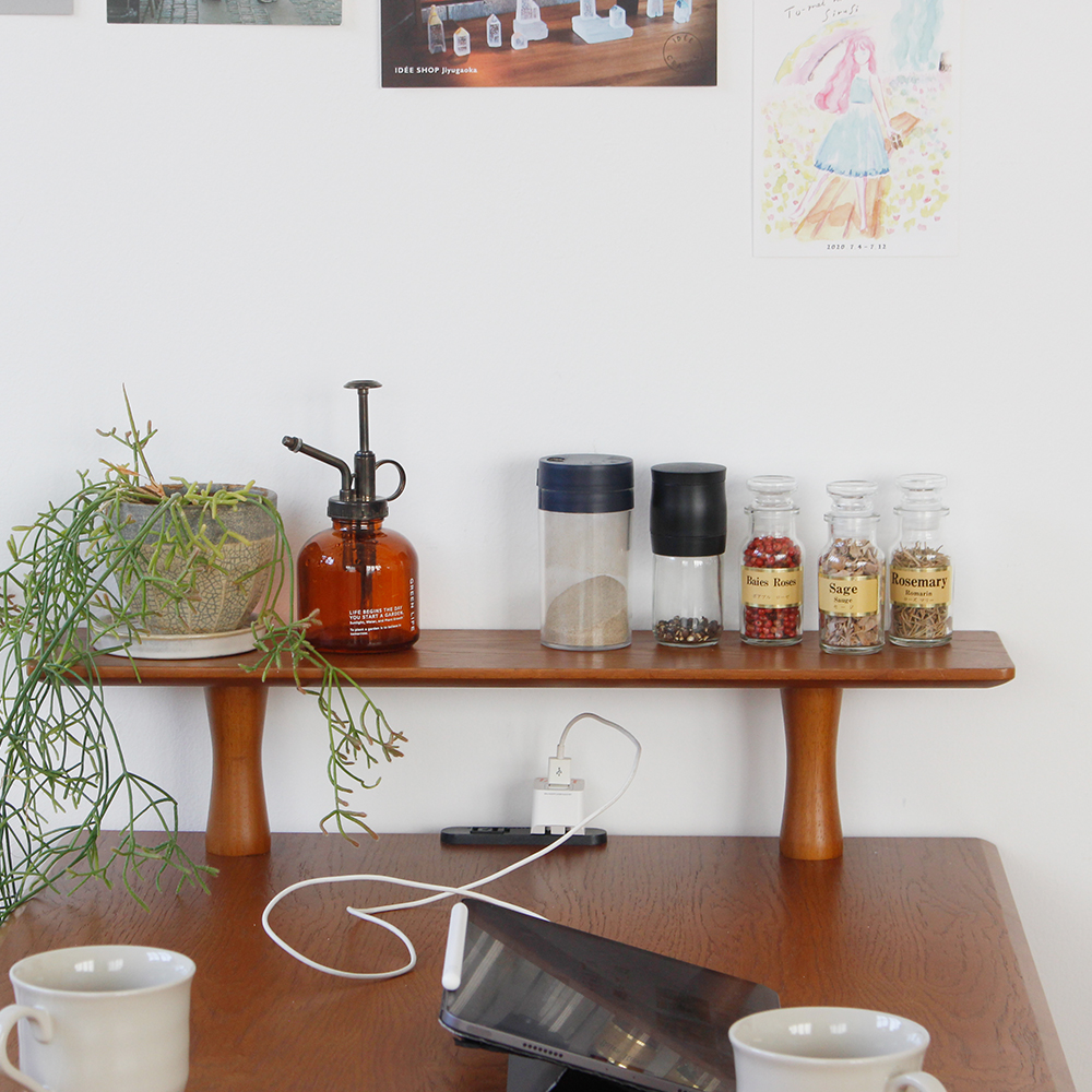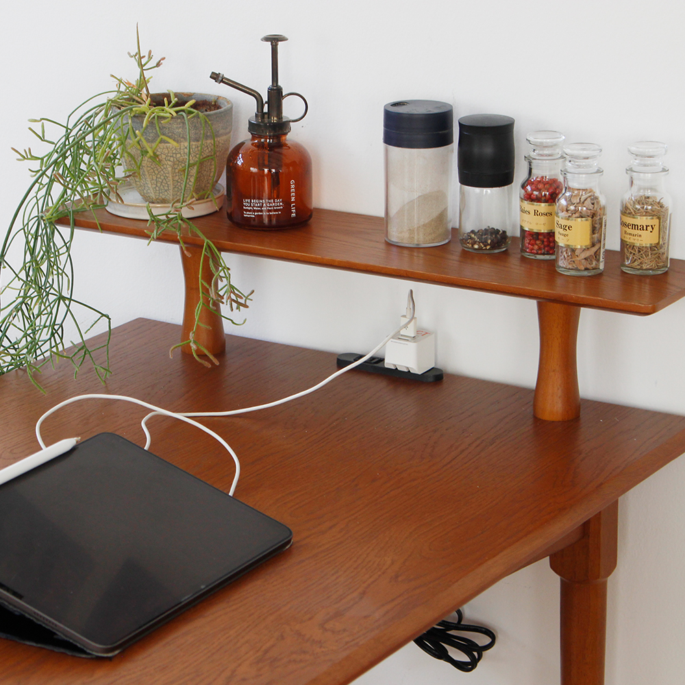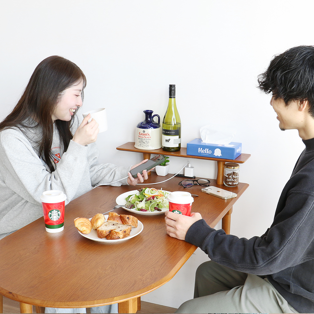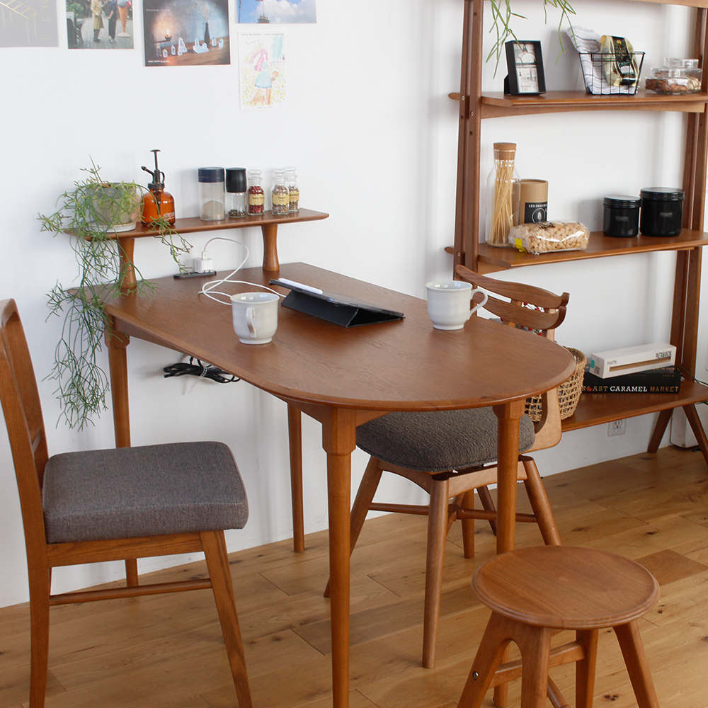 [材質]:天板,棚板:天然木化粧板(オーク材).脚:天然木(ラバーウッド材)